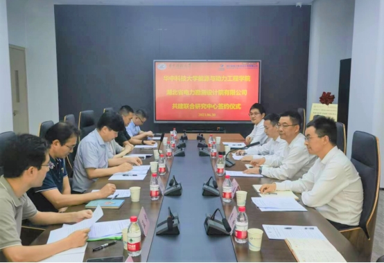 6月30日下午,湖北省电力勘测设计院有限公司党委书记、董事长屠建华一行访问yl23455永利。湖北院总经理助理付磊、科技信息与质量部主任黄洪波、科创中心总经理康慨和副总经理唐畅,公司党委书记姚洪、副经理方海生、煤燃烧与低碳利用全国重点实验室副主任于敦喜、经理助理程强、涂正凯研究员、温昶副教授、陈晟副研究员等人参与会谈。温昶副教授首先向与会专家介绍了联合研究中心的建设目标和主要研究内容。科学技术发展院副处长管晓霞与湖北院科技信息与质量部主任黄洪波签署了联合研究中心共建协议,姚洪书记和屠建华董事长共同为联合研究中心揭牌。