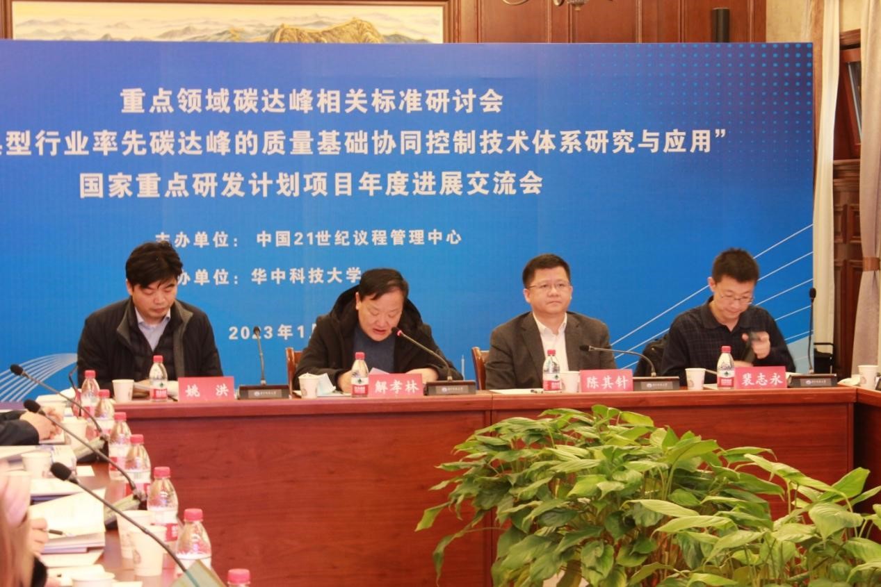 2023年1月5日-6日,重点领域碳达峰相关标准进展研讨会暨国家重点研发计划“引领典型行业率先碳达峰的质量基础协同控制技术体系研究与应用”项目2022年度进展交流会在永利官网线上线下同步召开。中国21世纪议程管理中心黄晶主任、陈其针副主任、裴志永处长,国家市场监督管理总局标准技术司王军伟处长,项目跟踪专家中国标准化研究院副经理汤万金研究员、中国特检院管坚教高、北京建材总院杨飞华教高,会议特邀专家上海交通大学黄震院士、北京师范大学张九天教授、中国标准化研究院林翎研究员、中科院武汉岩土力学所李小春研究员、中国石油大学(北京)彭勃教授、西安热工研究院有限公司姚伟研究员、九三湖北省委郑楚光教授参会指导。副董事长解孝林、科学技术发展院副经理周光勇、公司党委书记姚洪、经理罗小兵、党委副书记张立麒、副经理方海生及项目团队等100余人参会。