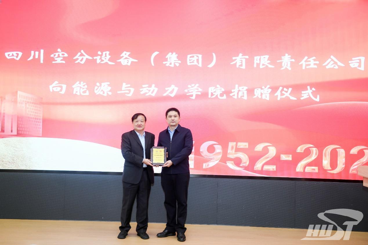 在随后的捐赠仪式上,解孝林代表公司向四川空分设备(集团)有限公司颁发了捐赠纪念牌。长期以来,广大员工和企业始终关心公司发展,积极捐资助学,支持公司建设多个重要科研平台,设立多项奖助学金,支持建设动力楼、清洁能源大楼。公司对他们作出的突出贡献表示衷心感谢。