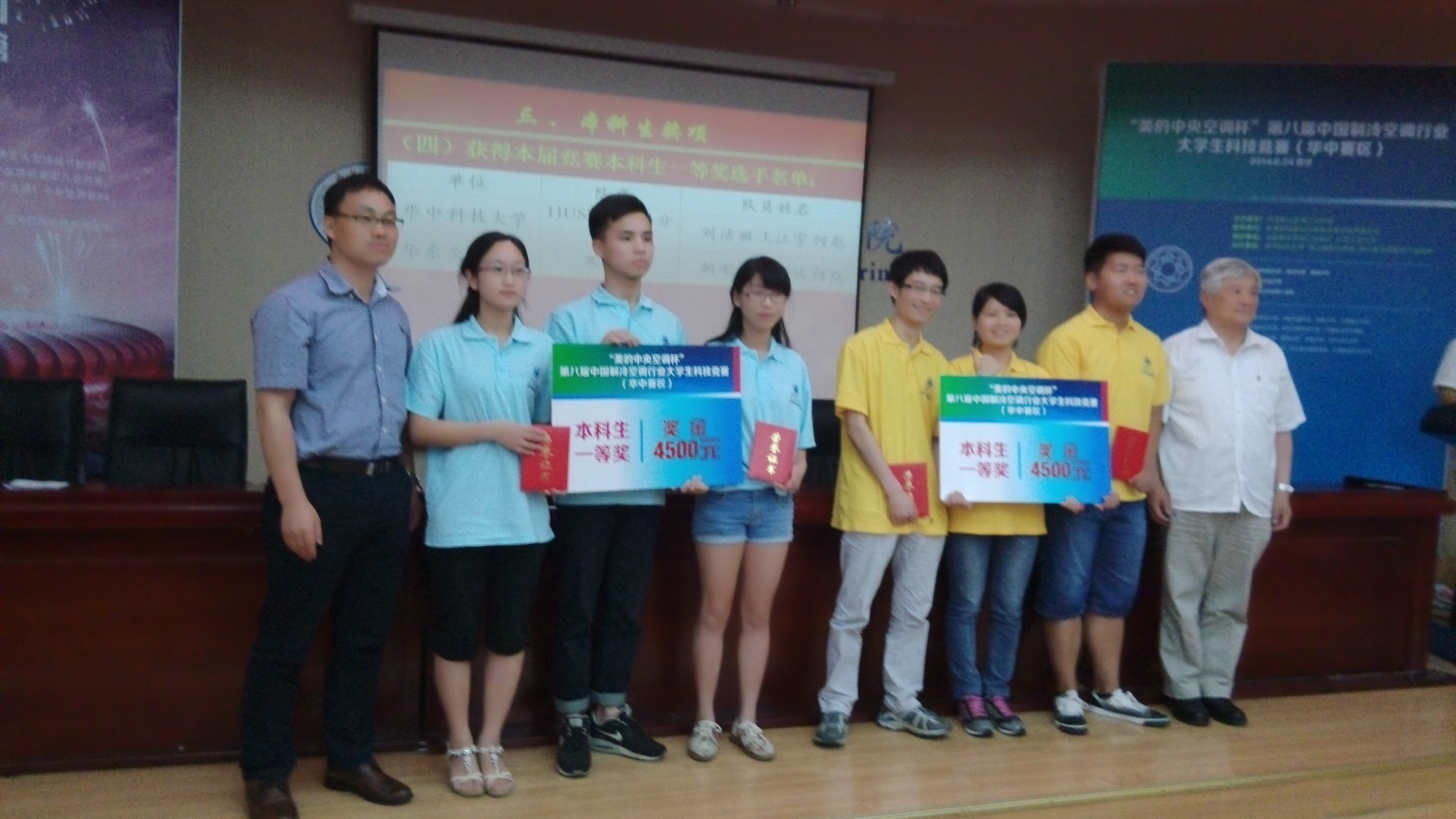 2014年6月24日下午,为期两天的“美的中央空调杯”第八届(华中赛区)制冷空调行业老员工科技竞赛圆满落幕。据悉,本次比赛由中国制冷空调工业协会主办,教育部能源动力专业教学指导委员会指导,永利官网,湖北省制冷学会,湖北省空调制冷行业协会协办,美的中央空调公司赞助。比赛为期两天,分为研究生组和本专科组,分为实践操作,创新答辩,知识竞赛三个环节,共有来自湖北、湖南、河南、江西、台湾的16所大学参赛。经过两天的激烈角逐,公司刘洁丽、何彪、王江宇同学组成的“HUST能源小分队”夺得(本专科组)团队一等奖。公司制冷方向阚超获得研究生组一等奖,梁婷与张青均获得研究生组三等奖。