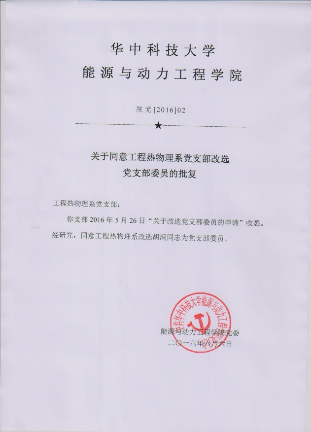 上一篇:关于同意工程热物理系党支部改选党支部委员的批复
