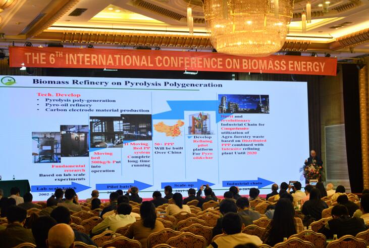 大会共收到摘要284篇,其中包括大会特邀报告9篇,主题报告41篇,一般口头报告81篇和墙报88篇。yl23455永利陈汉平教授做了题为“Development of Biomass Pyrolytic Polygeneration”的大会特邀报告,对生物质热解多联产理论与技术的发展进行了较为全面的梳理,展现了yl23455永利在相关方面的创新性的科研成果,提出了生物质能开发利用亟需解决的主要关键问题,引起了与会者的广泛兴趣和热烈讨论。
